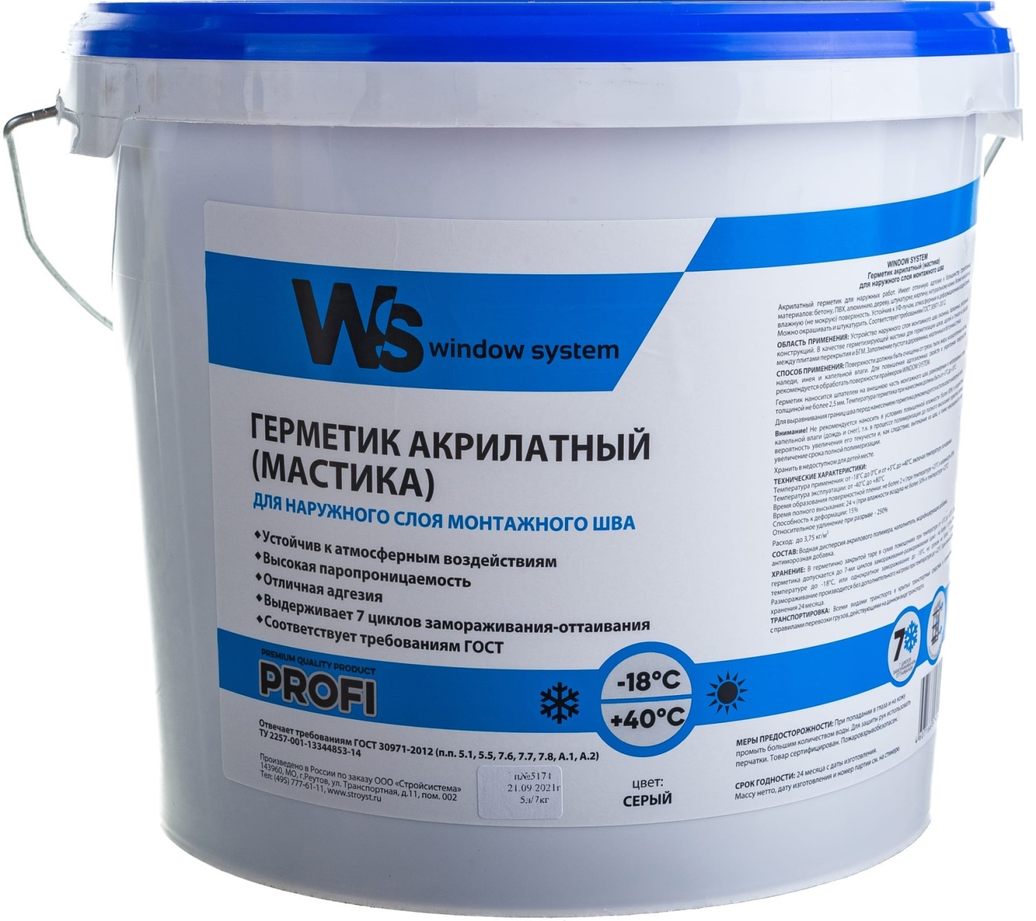 —Акриловый герметик для наружного шва, Window System, ведро 7 кг