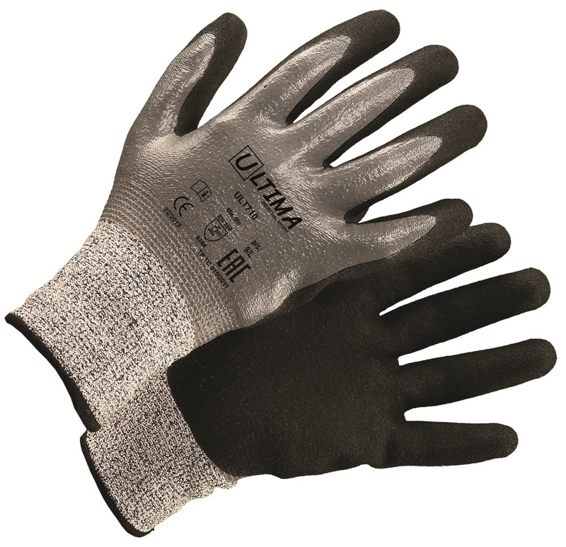 Конструкция: Влагоотталкивающие перчатки с бесшовной основой (13 класс вязки) из специального волокна HPPE/Glass (высокомодульный полиэтилен/ стекловолокно) и двойным нитриловым покрытием. 1й слой - полное покрытие нитрилом серого цвета кистевой части перчатки, 2й слой – частичное покрытие зернистым нитрилом черного цвета ладони и кончиков пальцев. Перчатки обеспечивают высокую механическую защиту (4344).