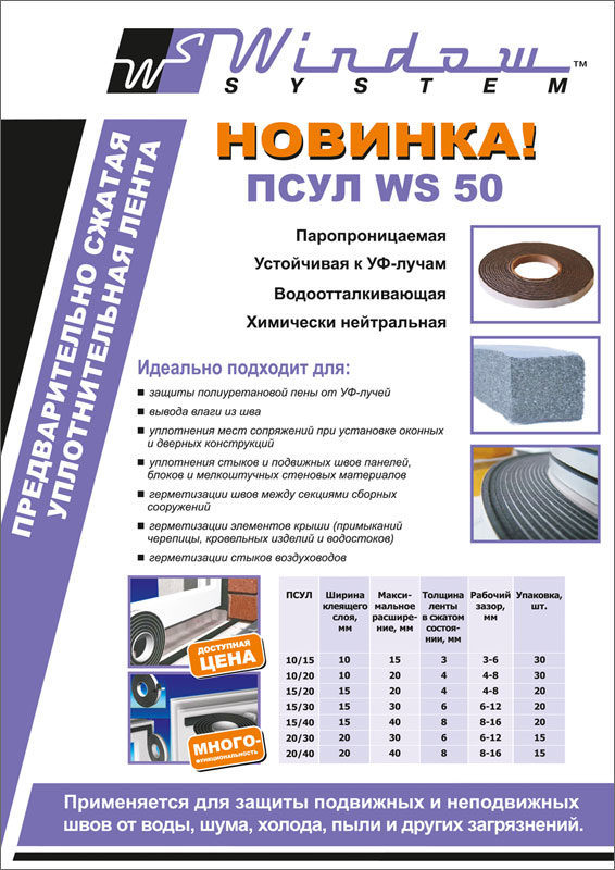 Группа Компаний «СтройСистема» сообщает о расширении ассортимента продукции: предварительно сжатая уплотнительная лента WS 50.
